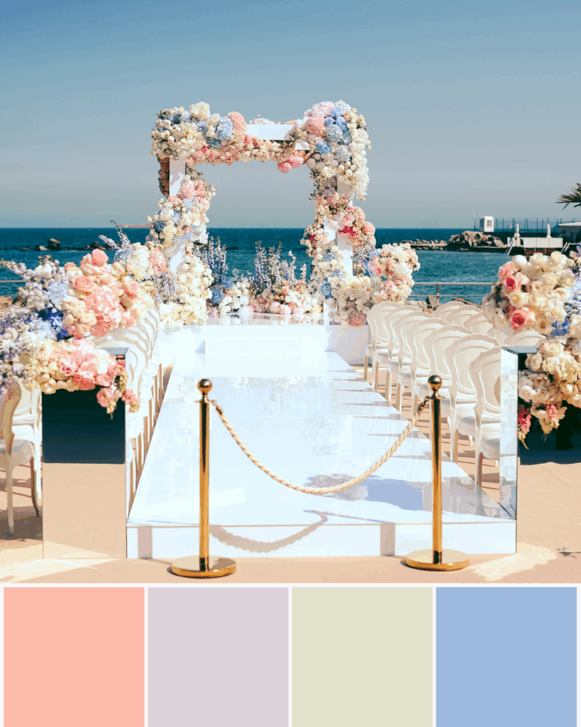 - Tons pastel: perfeitos para casamentos boho ou rústicos.